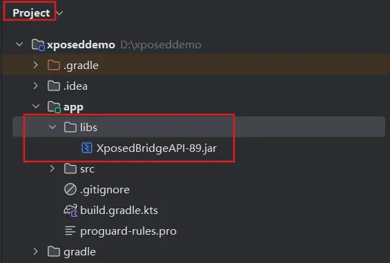 2.将下载的xposedBridgeApi.jar包拖进libs文件夹