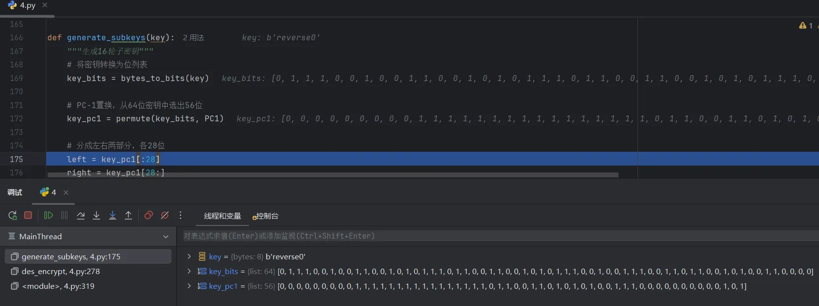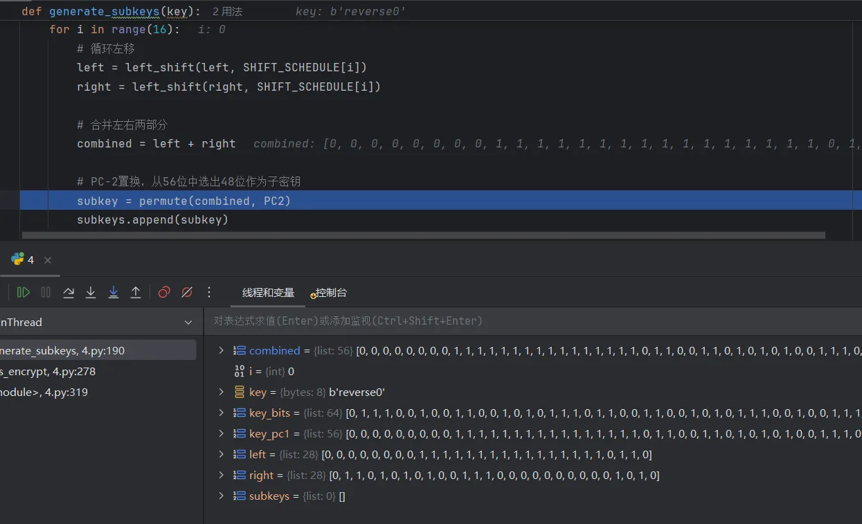 def generate_subkeys(key): """生成16轮子密钥""" key_bits = bytes_to_bits(key)