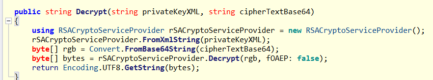 1 2 3 4 5 6 7 8 9 10 11 12 13 14 15 16 17 18 19 20 21 22 23 24 25 26 27 28 29 30 31 32 33 34 35 36 37 38 39 40 41 42 43 44 45 46 47 48 49 50 51 52 53 54 55 56 57 58 59 60 61 62 63 64 65 66 67 68 69 70 71 72 73 74 75 76 77 78 79 from cryptography.hazmat.primitives import serialization, hashesfrom cryptography.hazmat.primitives.asymmetric import rsa, paddingimport base64 private_key_xml = """<RSAKeyValue> <Modulus>jR+j5ZyLvbOyQRZgJQtHl5slRSQ4igoTQrKrwnmIwOcrkc48RQ6qD6wFXYAbFmiu34YpO638surG2dFemO0+vSoJuFksK70amen3pdilSgUukdFZ3SEJ/7QoeWls40exLsVPn3zWclN5b1ESaL4TN0MpC9lJUuWqkwiYSU2fZYQg9Z7S05RcVtl0JgK9O/DmLjW6+t6RdUAyo+9gsPXdGNOd/f4LyOTbj0iaWg2aCGfZhz3UtqACS2q6L9p1a9L3vYgLNpp1GnUcZnA+CVfhzcCWTHQ4X7hTuJsyysFEm/6tei3uBKYq6/HnTrmo2rSZxKS/GuExRO3A9hmyD+PEcw==</Modulus> <Exponent>AQAB</Exponent> <P>+6YUEMyFZlINlnZYRznRU0qU2Krb4QaFCUnNhFsL37y55rnz0/hLfLSA2FistQiMLy0Yz01fkxOTtwwkWkHikRu7KFi7vQzTg/KbdKNnHJ11huemk0DuwxDghj+3uNC30heSA6NFlF47zlge8AY2J+iQ8JpgJNsrfZYNRZ5txD0=</P> <Q>j5BSrK3Li9VaBvRn2UGMf8q2N0J7tbaRvQonHhU1uBQYlhifttmK5wr1PurZHsb7tiNIv0RluM9HaUbQ/CczqLskVKJNkwpVyGM2rydiqbZ/KaP00ytTiR7Hxd0GUC06Syfi2h1VwaEewAOTkRUo/DuKYugPSaiyqARipyhfRm8=</Q> <DP>0lwCagiNevscYKqNIP0z/mxaAMTTCUhp7VnEct+pDV62CClpqcflUlmRW0jFFpAOn2ETXDdRraCv2lRMDycEPkjwKsoCJgaSyboEOXxetYzqsdrzZCTjciypg4/ABL506yrI5EGX6G7dj6AaPIr0umeuwXJK7IRJ1rGYZpoJKAE=</DP> <DQ>HA4BCfughj/4KtnCHYOguCxd9WiJklYOHtoIEOnmKIXM1DAVrf7PFR1gFZ6BNXF/KPW2NqJgGoBvHRSYrF3gy31euSdKb4yafOFeg1X4AuBF81Y19rpFxcr9ER6DKFHeTWeK/kKzSnZ48t8ADF8NNlVQUsm0ixlraEgLG01ZaQM=</DQ> <InverseQ>qZwSExM5GW+CsTtvN2DPmwQtLf7cTA2DwY+8+4bnR7X0MTqssUDNtc8l+HD3uml9BRg9m4t1PoY+qGsh5qEtFsITBvt0pqNM5mdg8WrB1e85Xzpdvsfqvv1PN3KsDjduzkY0SazVBlur+OX86JTF3jSLFeFkornO1ckHcApqU54=</InverseQ> <D>LABbh/IhmAp5X9XsMGCt99VF76L1hgTSMI+pAkAGpa7uZM3a+OUznSNToO2ahIgrTkJ0hMkg62BMlAm15xTB5RVAZpxXK2QQ8UCEGM/N6aBn/ss5q7rrdTDlFcYLT2pBEoYu51lzO75PNKggh0wMjcSA/dLIC/LUFngtk12Cf5IRwsdn0Kc2aoiiHU0NtvWklLZGkzcs4VL5FI7n1yDeIS9I+lKA14dJUCEhAltfMMiTSq+vpzoSedOcc8V0v9O9mjef8W62DasLusKxCCQi6PzsLA7ul2yLuOWTi1oysnrUVZryOWTvMr2V3GC0wfGRdXajd6qwwKVvGUt72egeEQ==</D> </RSAKeyValue>""" cipher_text_base64 = "TxDTykBFS+ewdHSIKSRRw63i4/7Os3pHqvC/WOnnFPKupfz0VpUqFRVEgtOdfJLdcxNKBvc67E/nIqU4dz8L88DZB9xVaKawdDgJ8c3EhI//r1aZkzbN2hURFdsS1UoF932XT9wPW61TsXPX7UyFAG4IInifxQr6KU7hyQNHIkpBkYsTgp/wxH5/g6IKEff8H/zEjbLcalck5k/r3vG8DeBQkhZUQ4I5HfIyetUBAmZyr8sZkygErKxVaF6vWZZtoPBkLzCxY0WIoaYcTfp+n5q1dUBDOshvXhVf1M3KGokZL2PqXT9K9Gv91d8aazXq7MV1iqCN4AwWAeFPn8OIYg==" def decrypt_rsa_xml (private_key_xml, cipher_text_base64 ): from xml.etree import ElementTree as ET root = ET.fromstring(private_key_xml) def b64decode_tag (tag_name ): tag = root.find(tag_name) if tag is not None : return base64.b64decode(tag.text) return None modulus = b64decode_tag('Modulus' ) exponent = b64decode_tag('Exponent' ) p = b64decode_tag('P' ) q = b64decode_tag('Q' ) dp = b64decode_tag('DP' ) dq = b64decode_tag('DQ' ) inverse_q = b64decode_tag('InverseQ' ) d = b64decode_tag('D' ) def bytes_to_int (b ): return int .from_bytes(b, 'big' ) n = bytes_to_int(modulus) e = bytes_to_int(exponent) d = bytes_to_int(d) p = bytes_to_int(p) q = bytes_to_int(q) dp = bytes_to_int(dp) dq = bytes_to_int(dq) iq = bytes_to_int(inverse_q) private_key = rsa.RSAPrivateNumbers( p=p, q=q, d=d, dmp1=dp, dmq1=dq, iqmp=iq, public_numbers=rsa.RSAPublicNumbers(e=e, n=n) ).private_key() cipher_data = base64.b64decode(cipher_text_base64) plain_data = private_key.decrypt( cipher_data, padding.PKCS1v15() ) return plain_data.decode('utf-8' )try : plaintext = decrypt_rsa_xml(private_key_xml, cipher_text_base64) print ("解密成功!" ) print ("明文:" , plaintext)except Exception as ex: print ("解密失败:" , str (ex))
