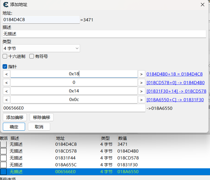 多级指针,32位程序使用CE基本还是通过偏移寻找基准地址
