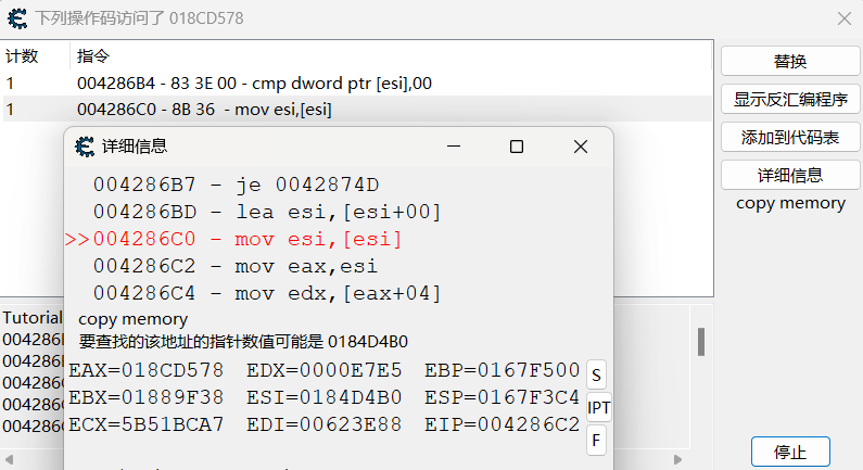 指针数值存储在ESI,对应偏移量18