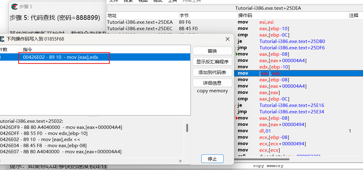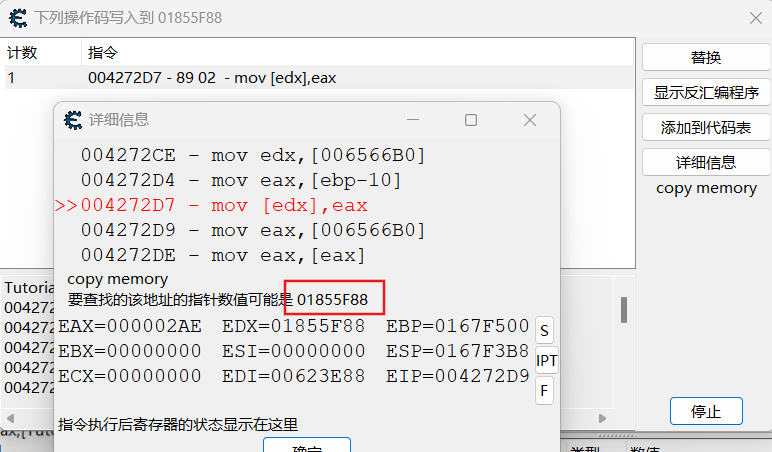 反汇编程序,找出指令返回地址