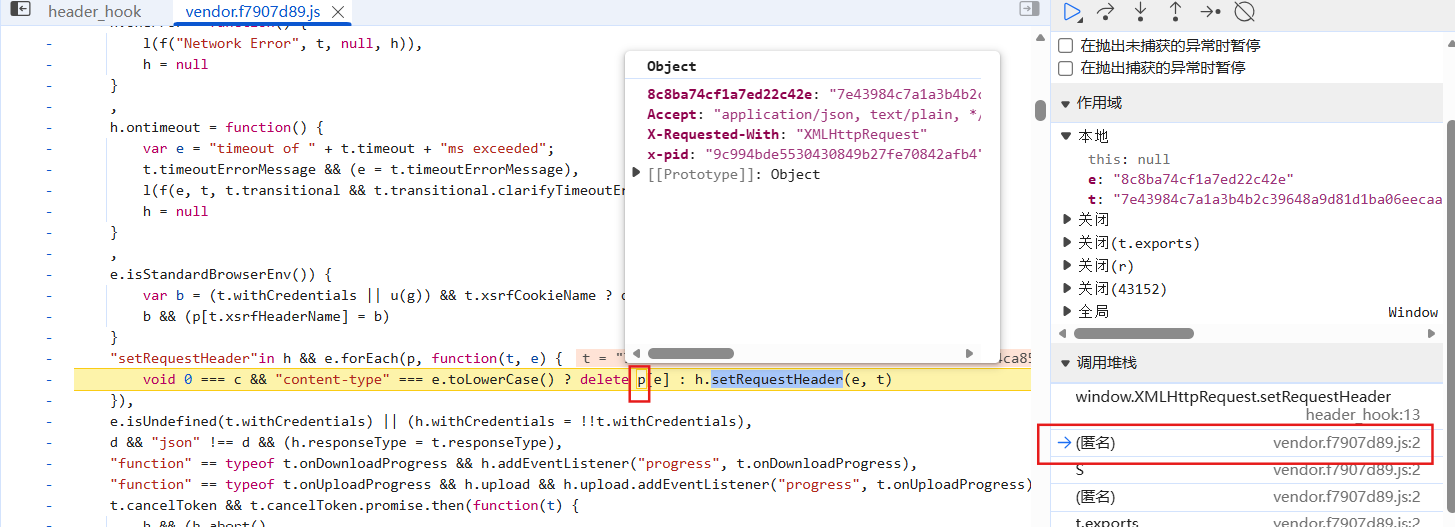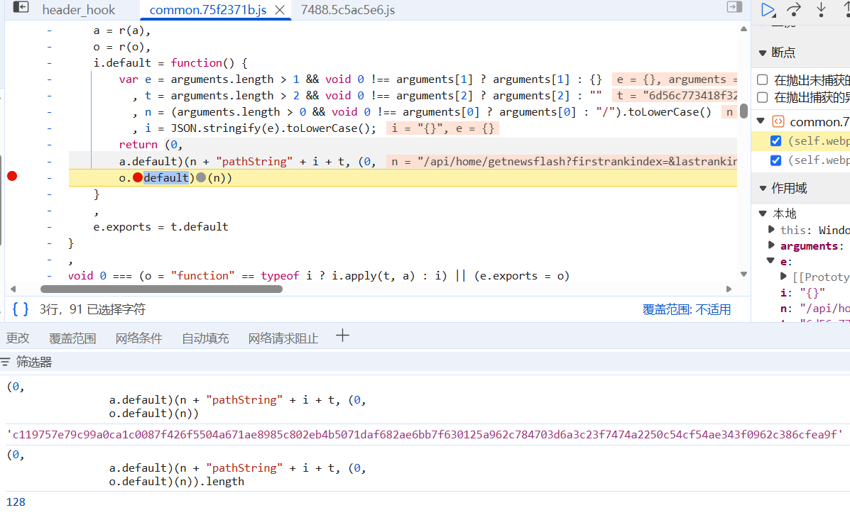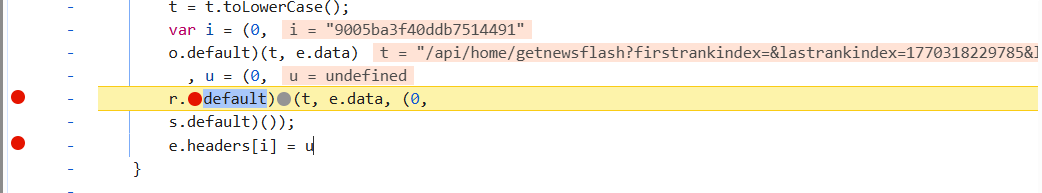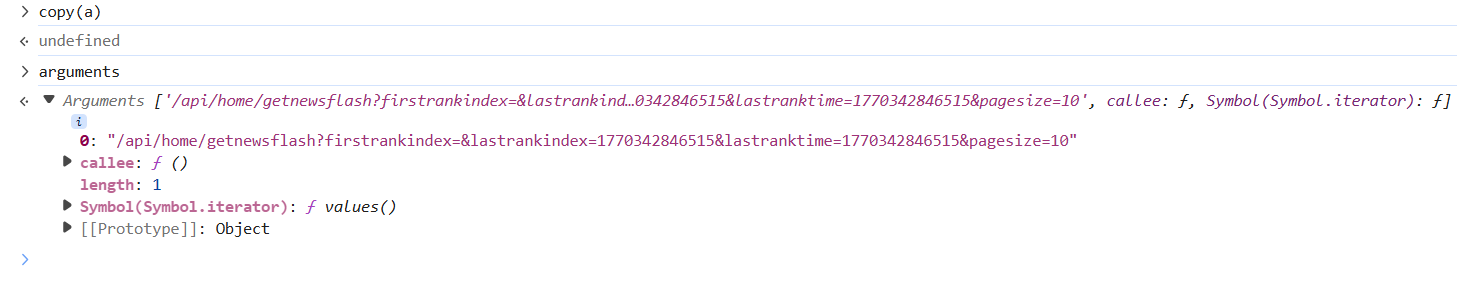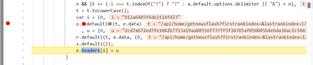 | var CryptoJS = require("crypto-js"); function HMACEncryption(message, key) { return CryptoJS.HmacSHA512(message, key).toString(); } a = { "default": { "n": 20, "codes": { "0": "W", "1": "l", "2": "k", "3": "B", "4": "Q", "5": "g", "6": "f", "7": "i", "8": "i", "9": "r", "10": "v", "11": "6", "12": "A", "13": "K", "14": "N", "15": "k", "16": "4", "17": "L", "18": "1", "19": "8" } } } function enc1() { for (var e = (arguments.length > 0 && void 0 !== arguments[0] ? arguments[0] : "/").toLowerCase(), t = e + e, n = "", i = 0; i < t.length; ++i) { var o = t[i].charCodeAt() % a.default.n; n += a.default.codes[o] } return n } function enc2() { var e = arguments.length > 1 && void 0 !== arguments[1] ? arguments[1] : {} , t = arguments.length > 2 && void 0 !== arguments[2] ? arguments[2] : "" , n = (arguments.length > 0 && void 0 !== arguments[0] ? arguments[0] : "/").toLowerCase() , i = JSON.stringify(e).toLowerCase(); return HMACEncryption(n+"pathString" + i + t,enc1(n)) } str="/api/home/getnewsflash?firstrankindex=&lastrankindex=1770292572107&lastranktime=1770292572107&pagesize=10" key=HMACEncryption(str + "{}", enc1(str)).toLowerCase().substr(8,20) value=enc2(str,undefined,'6d56c773418f32926b76ce5ea9b69644') console.log(key) console.log(value)
